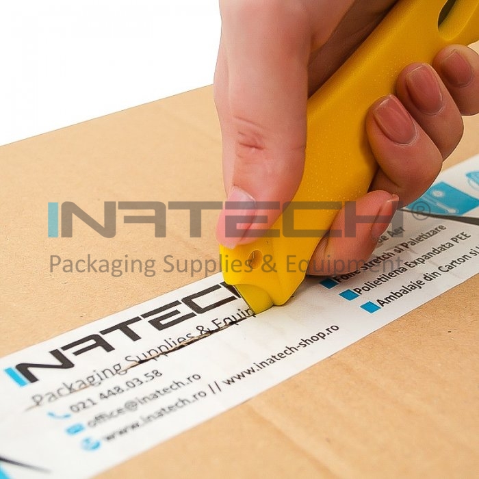 Cutter pentru taierea foliei stretch si a benzii adezive are o structura care ofera o aderenta imbunatatita. Designul special al acestui cutter garanteaza ca taierea este simpla, sigura si previne deteriorarea produselor.