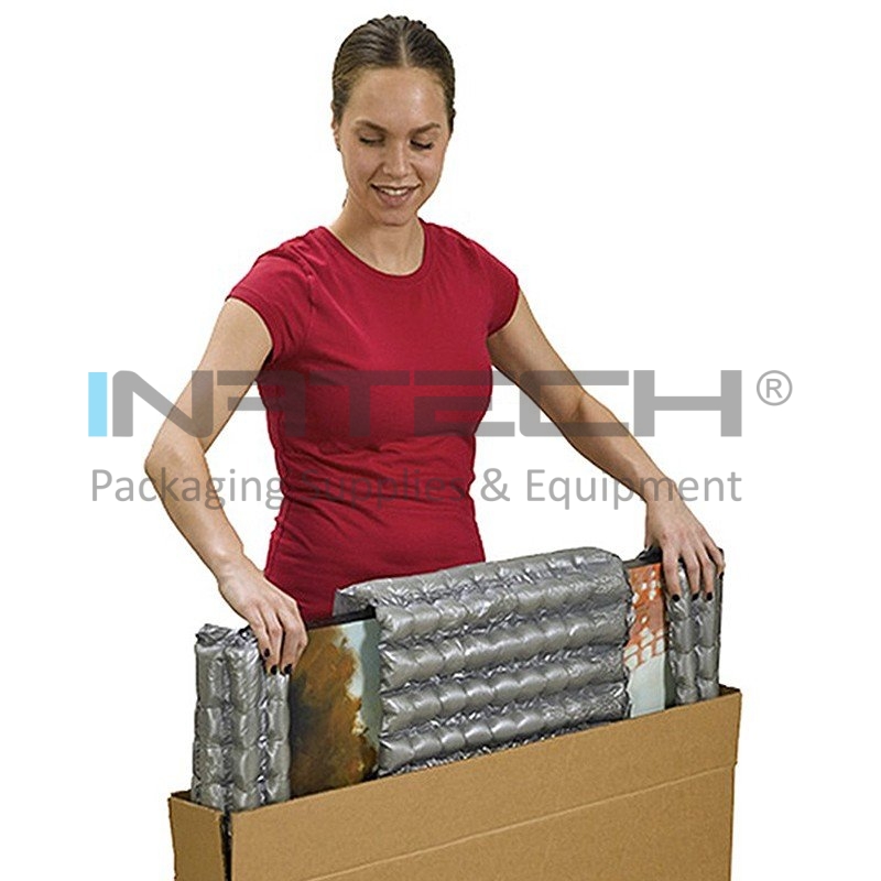 2. Se poate combina cu ambalaje din spuma in perne pentru laterale cutiei in care se afla produsul si pentru o protectie superioara se foloseste un rand de tuburi umplute cu spuma ca strat de protectie jos pentru a fixa ferm obiectele fragile.