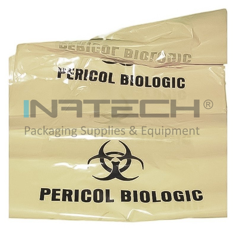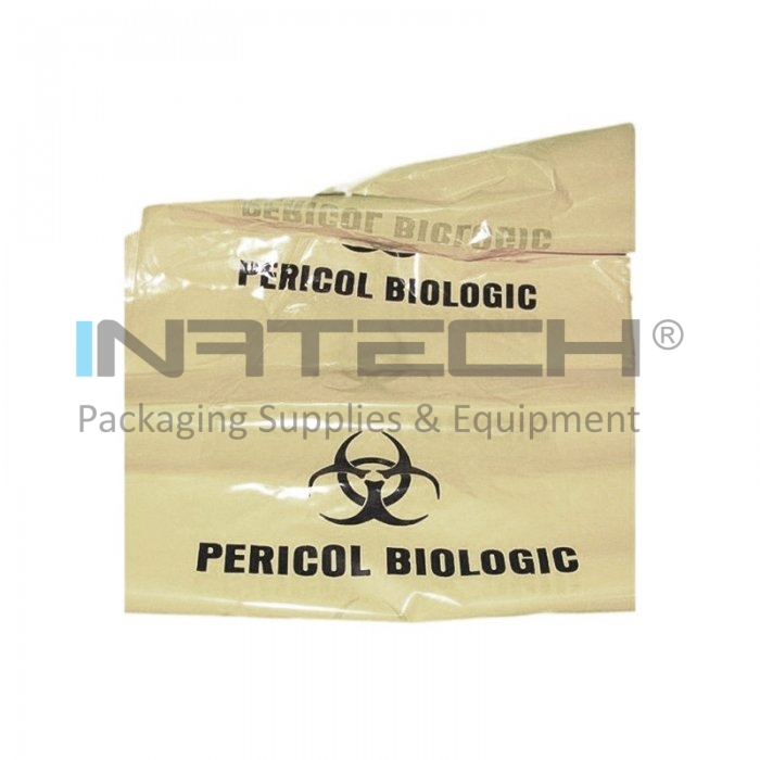 Caracteristici saci din polietilena inscriptionati PERICOL BIOLOGIC: