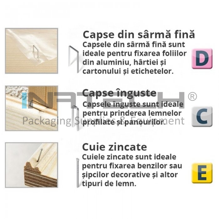 Capse Zincate inguste pentru prinderea panourilor si a lemnelor profilate. Capsele Zincate Tip C sunt compatibile cu produsul Capsator Electric J-165 Panel.