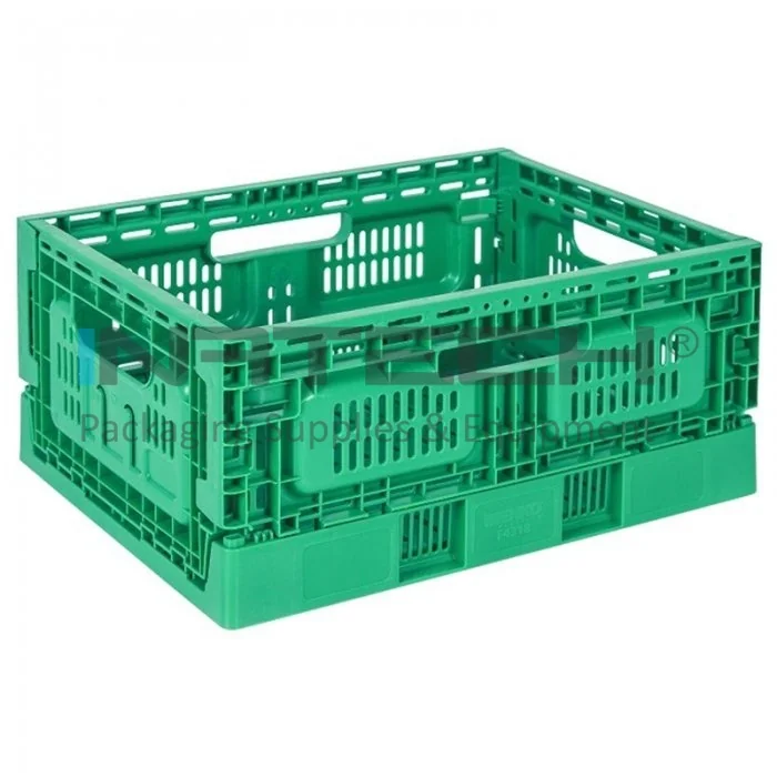 Lada Pliabila Cu Pereti Ventilati Dimensiune Interioara 570 x 370 x 230 mm, Dimensiune Exterioara 600 x 400 x 235 mm, Material PP Virgin, Volum Litri 48.5, Culoare Verde