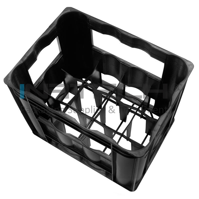 Lada Transport 12 Sticle Dimensiune Exterioara 400 x 300 x 340 mm, Material PP Reciclat, Greutate 1.6 kg, Culoare Negru