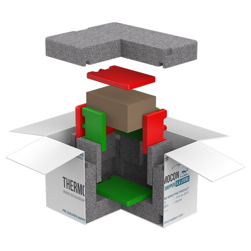 Sistemul complet include atat ambalaje termoizolante, cat si elementele de racire, gata de utilizare pentru expedierea produselor farmaceutice, biotehnologice si altor bunuri sensibile la temperatura. Testele riguroase efectuate in camere climatice au confirmat eficienta intregului termosistem in mentinerea conditiilor necesare pentru aceste produse.