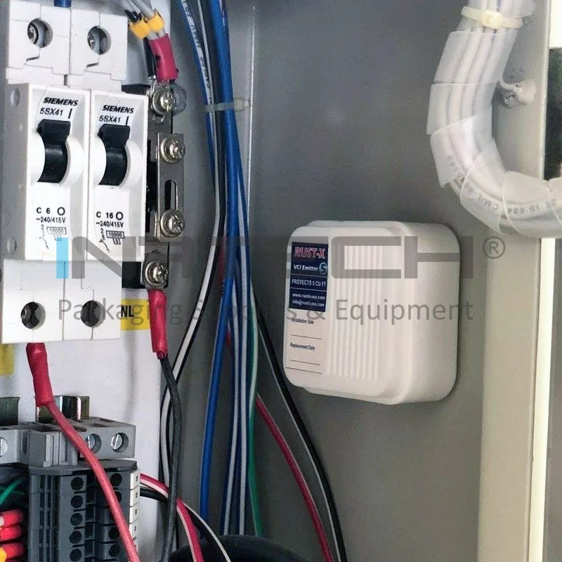 Emitator VCI Anticoroziune sau de inhibitori corozivi usor de aplicat. Intr-un spatiu inchis, cum ar fi dulapurile metalice sau carcasele produselor electronice (calculatoare, panouri electrice), acesta protejeaza impotriva coroziunii contactele de cupru si aliajele sale, argintul, etc. Datorita benzii dublu adezive aplicate pe spatele fiecarei capsule emitatoare VCI, pot fi plasate in orice spatiu liber din carcasa produsului electronic.
