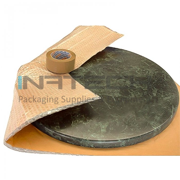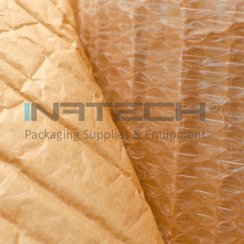 Folia Cu Bule Cu Hartie Kraft pentru protectia produselor fragile cu forme neregulate. Folia cu bule de aer este un material de ambalare usor si flexibil, produs din folie de polietilena de joasa densitate, ideala pentru protejarea produselor fragile si cu forme neregulate. Acest tip de ambalaje protejeaza foarte bine suprafata produsului si ofera o protectie anti-soc si anti-vibratii. Folia cu bule de aer mici poate fi folosita si pentru a umple spatiile goale din interiorul ambalajelor.