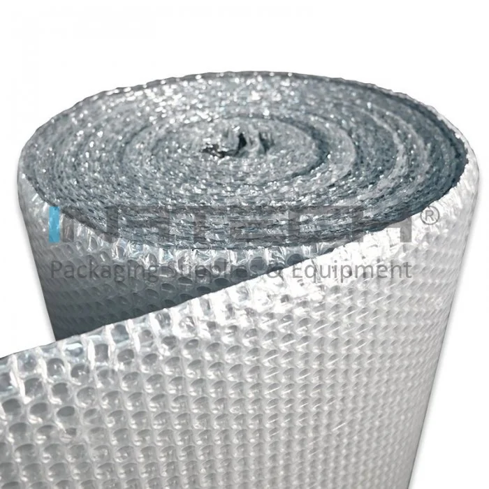 Folie Bule Mici Aluminizata este o bariera de vapori reflectorizanta compusa din folie cu bule de aer in doua straturi, laminata cu BOPP aluminizat pe o singura parte.