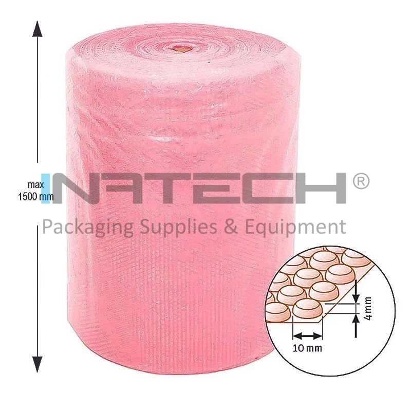 Folie Bule Mici Roz pentru protectia produselor fragile cu forme neregulate. Folia cu bule de aer mici este un material de ambalare usor si flexibil, produs din folie de polietilena de joasa densitate, ideala pentru protejarea produselor fragile si cu forme neregulate. Acest tip de ambalaje protejeaza foarte bine suprafata produsului si ofera o protectie anti-soc si anti-vibratii. Folia cu bule de aer mici poate fi folosita si pentru a umple spatiile goale din interiorul ambalajelor.