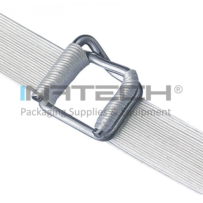 Bucle Metalice Banda PES folosite pentru legarea benzii albe pentru paletizare. Buclele pentru tensionarea benzii din poliester sunt elemente de legare si fixare. Acestea pot fi atat galvanizate, cat si fosfatate si pot fi utilizate in functie de aplicatia necesara.
