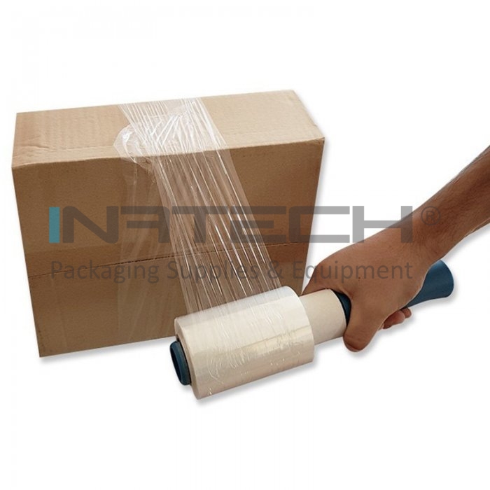 Avand latimea de 100 mm si lungimea de 150 m, aceasta mini folie stretch poate fi folosita si se dovedeste a fi utila pentru mai multe aplicatii, cum ar fi: infasurarea obiectelor mici si greu de infoliat cu ajutorul unei role de folii stretch standard, protejarea partilor produselor, protectia marginilor si impachetarea unor produse cu forme dificil de infoliat. Folia stretch mini rola este livrata cu un dispenser din plastic, ergonomic, pentru o aplicare usoara, cu o singura mana.