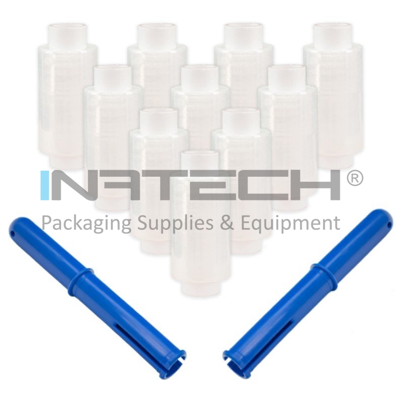 Acest kit este format din zece sau sase folii stretch mini role care se intind de 3 ori mai mult decat lungimea lor initiala si doua dispensere (sau unul, in functie de kitul ales) care se folosesc impreuna cu mini rolele pentru o intindere usoara a foliei. Filmul de intindere turnat se lipeste numai de sine, astfel incat nu lasa in urma dezlipirii niciun reziduu lipicios.