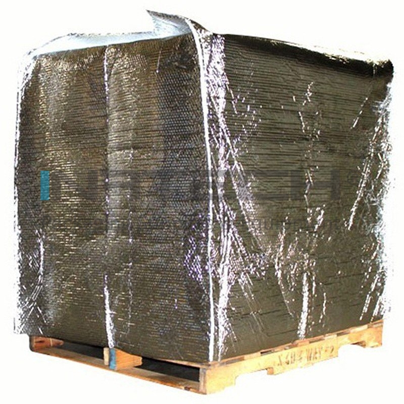 Thermo Pallet Cover este o solutie de protectie termoizolanta profesionala, proiectata pentru ambalarea paletilor si a produselor de mari dimensiuni. Fabricata din folie cu bule de aer de 140my grosime, laminata cu strat PET aluminizat de 11my, aceasta husa asigura izolatie termica eficienta, protectie impotriva umiditatii, socurilor si murdariei. Este utilizata in ambalarea produselor din lemn, materiale de constructii, ceramica, sticla, mobila, produse industriale sau chimice.Thermo Pallet Cover se aplica usor si este compatibila cu procese de ambalare manuale, semi-automate sau automate. Flexibilitatea materialului permite o aplicare precisa si sigura, protejand suprafetele sensibile impotriva zgarieturilor, loviturilor si influentei factorilor externi. Husa este disponibila in mai multe dimensiuni standard, cu tolerante precise, adaptabile diverselor tipuri de marfuri si cerinte logistice.