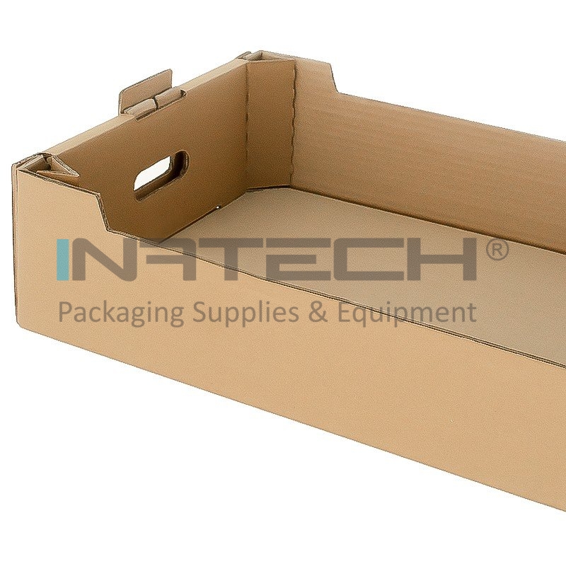 Lada Pentru Fructe si Legume este formata din carton ondulat CO5 de culoare natur. Aceste tipuri de lazi sunt destinate transportului fructelor si legumelor, deoarece sunt rezistente si reprezinta o solutie ideala de ambalare. In acelasi timp, lazile sunt realizate din materiale prietenoase cu mediul si sunt 100% reciclabile.