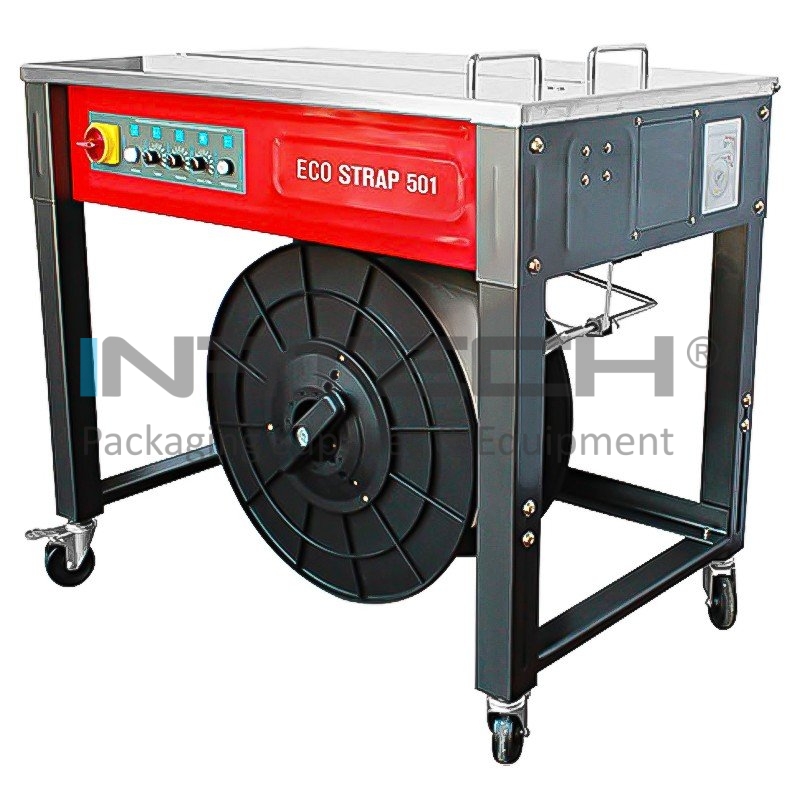 Functionarea este realizata prin motoare pe curent continuu dispuse pentru fiecare functie a masinii, are un regulator electronic de tensionare a benzii care poate fi accesat din panoul de comanda. Datorita rotilor este posibil sa o mutati dupa cum este necesar. Masina de legat banda PP este economica si compacta, proiectata pentru utilizari generale cu volume de lucru medii si mici. Este ideala pentru legarea cutiilor sau pachetelor si poate fi utilizata atat in depozite, birouri, supermarketuri cat si oriunde este nevoie de ambalaje sigure.