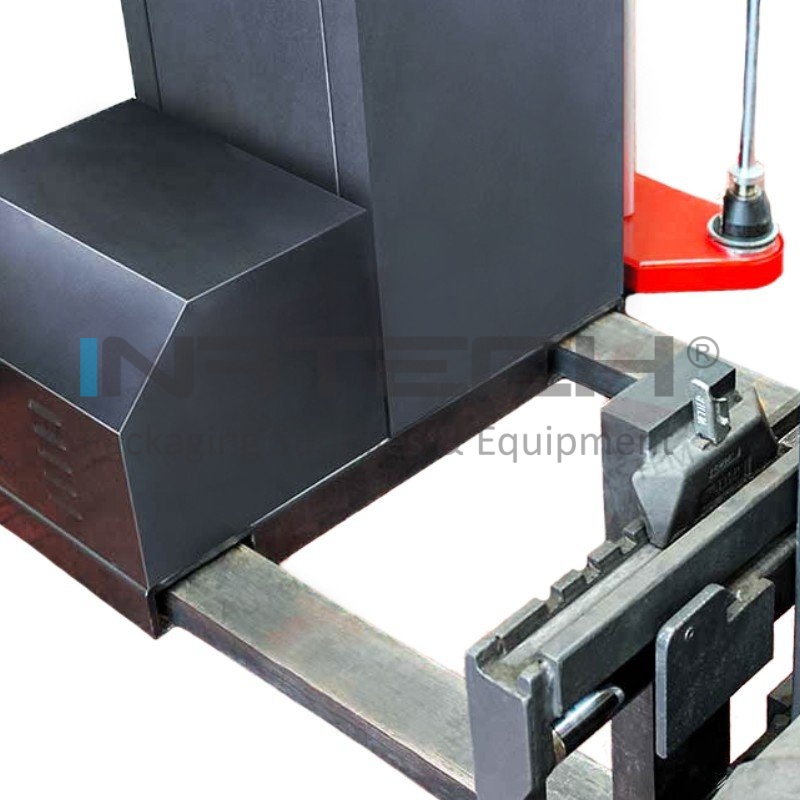 Distanta dintre masa rotativa si coloana permite infolierea paletilor cu diametrul de pana la 1500 mm, inaltime de 2200 mm si capacitate de pana la 1500 kg.