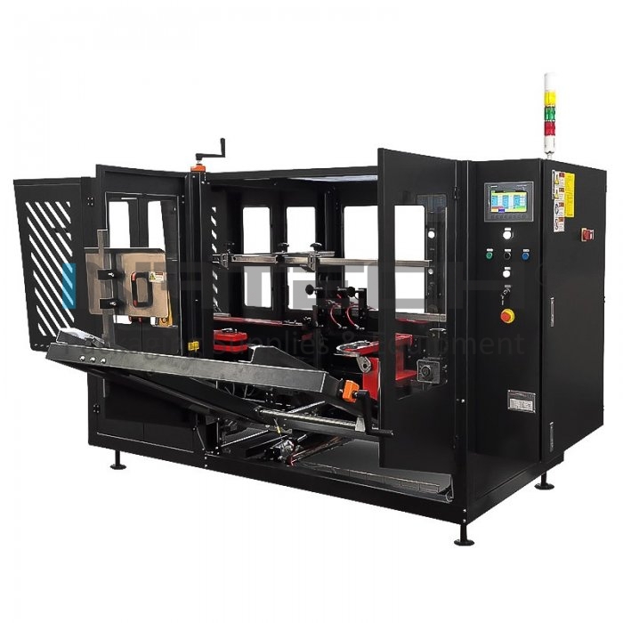 Modelul Speed Former 50 SB este o masina automata de formare a cutiilor din carton, la o viteza de 12 cutii de carton pe minut. Cu ajutorul sistemului de prindere cu ventuze, masina automata preia cutia pliata din sectiunea laterala, o formeaza si in final o sigileaza cu banda adeziva in partea inferioara.