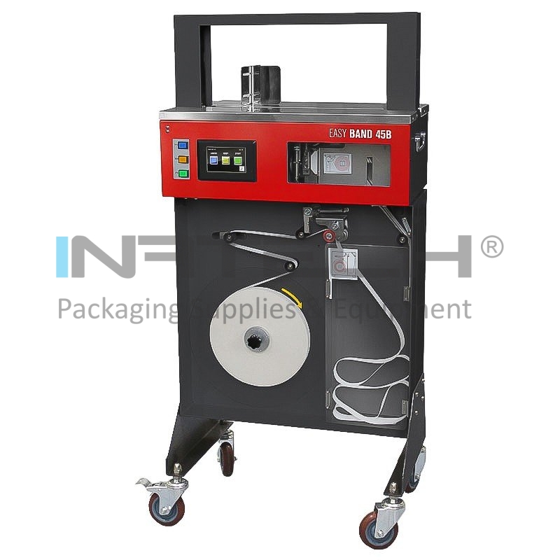 Easy Band 45 B este o masina fiabila, care utilizeaza un suport de role motorizat pentru autonomie de pana la 800 de metri. Masina are setari diferite, care pot fi gestionate de pe panoul de control al ecranului tactil, inclusiv gestionarea vitezei ciclurilor de bandare. Masina pentru legat cu banda poate fi operata manual sau automat prin intermediul unui senzor.