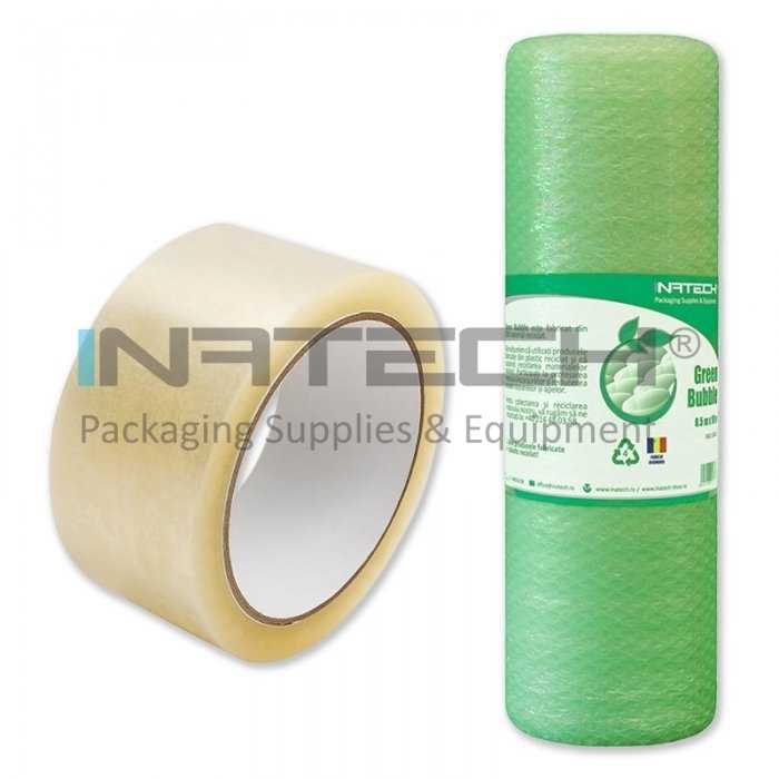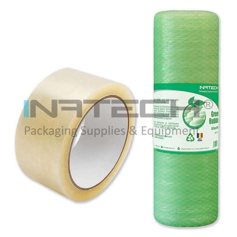 Pachetul Folie cu Bule 1 x 25 m, 40 my + Bandă Adezivă Acrilică este soluția practică și accesibilă pentru ambalarea obiectelor fragile, mici sau medii, oferind protecție sporită împotriva șocurilor și zgârieturilor.