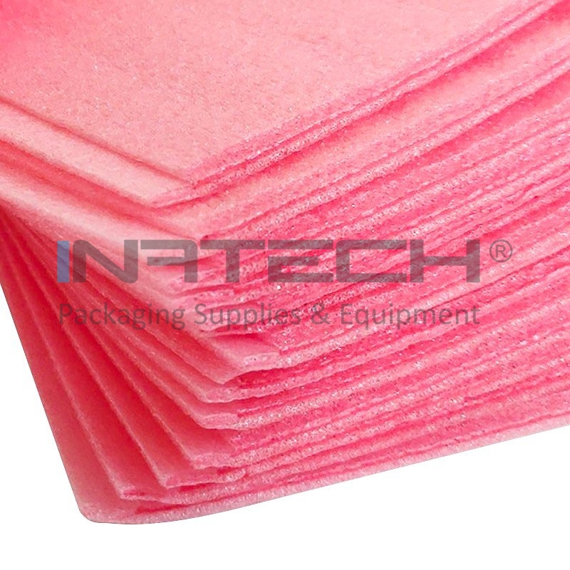 Pungi Polietilena Expandata ESD, 500 x 500 x 3 mm Lungime 500 mm, Latime 500 mm, Adeziv NU, Straturi 2, Grosime 3 mm, Clapeta NU mm, Culoare Roz, Ambalare Buc/Cutie 1000