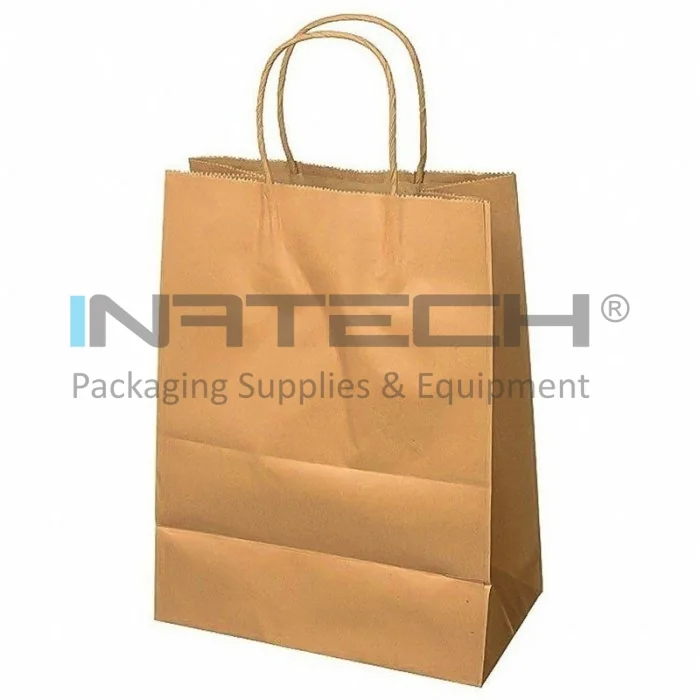 Pungi Hartie Cu Maner Rasucit, Alb/Natur Tip Maner Sfoara, Dimensiuni 160 x 90 x 210 mm, Material Hartie 90 gr/m2, Culoare Natur, Buc / Pachet 100