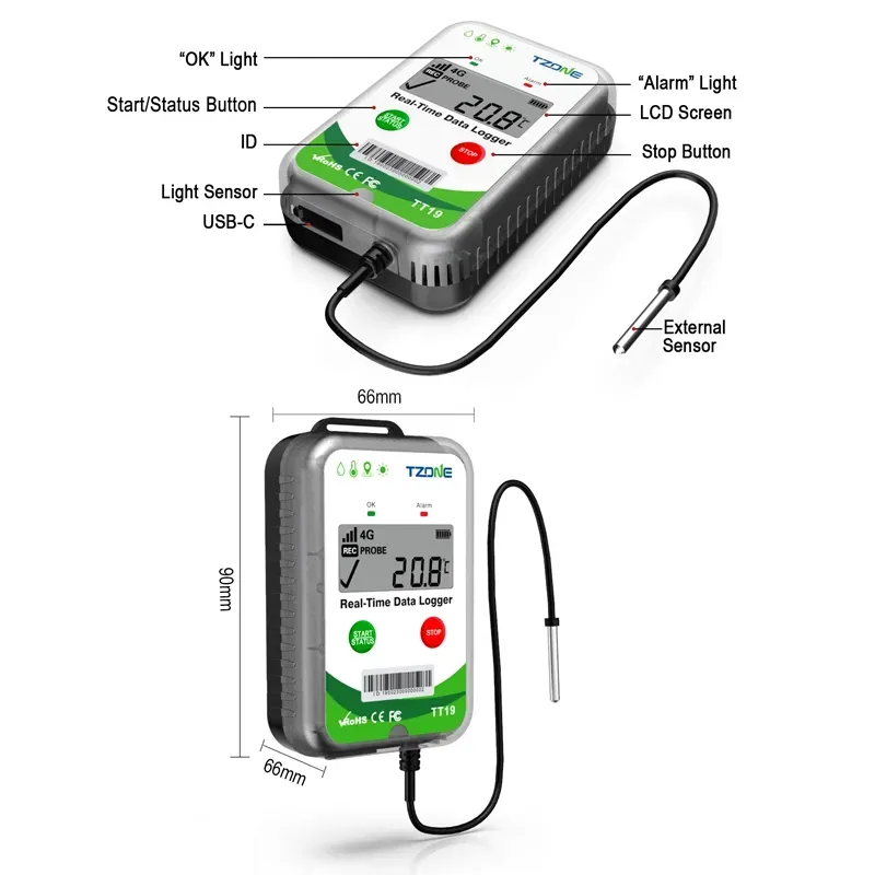 TT19EX este un data logger de inalta performanta, care permite monitorizarea in timp real a temperaturii, umiditatii, vibratiilor, luminii si locatiei, fiind solutia ideala pentru aplicatiile industriale si logistice care necesita trasabilitate continua si fiabilitate. Dispozitivul are o capacitate mare de stocare, fiind capabil sa salveze pana la 17.000 de citiri, iar datele pot fi transferate fara pierderi dupa conectarea la retea.